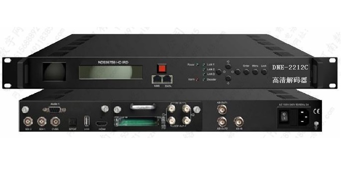 高清解碼器是新的研發的設備。 它可以接收Tuner信號(DVB-C,DVB-T/ T2, DVB-S / S2 / S2X ATSC-T, ISDBT可選)。 經解調,解擾和解碼的內容可通過各種視頻/音頻接口輸出。 視頻/音頻輸出支持HDMI, CVBS SDI, BNC, XLR接口和SPDIF。